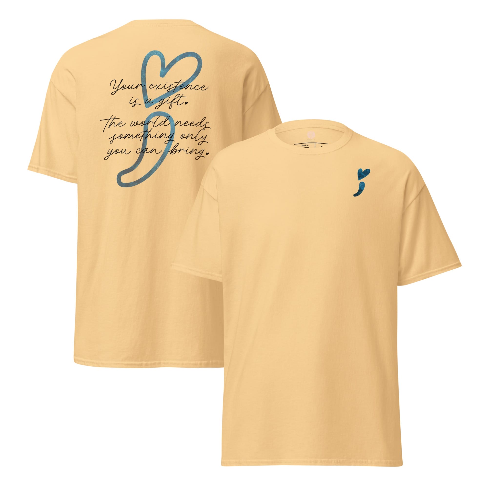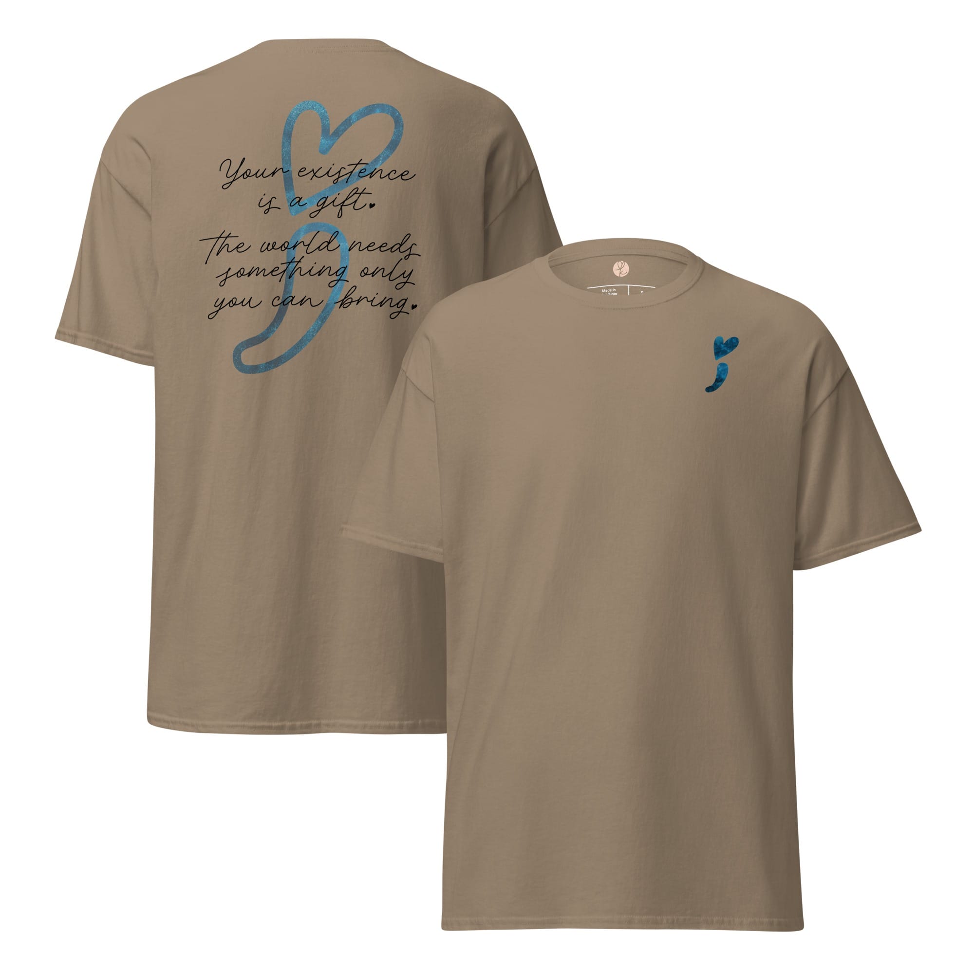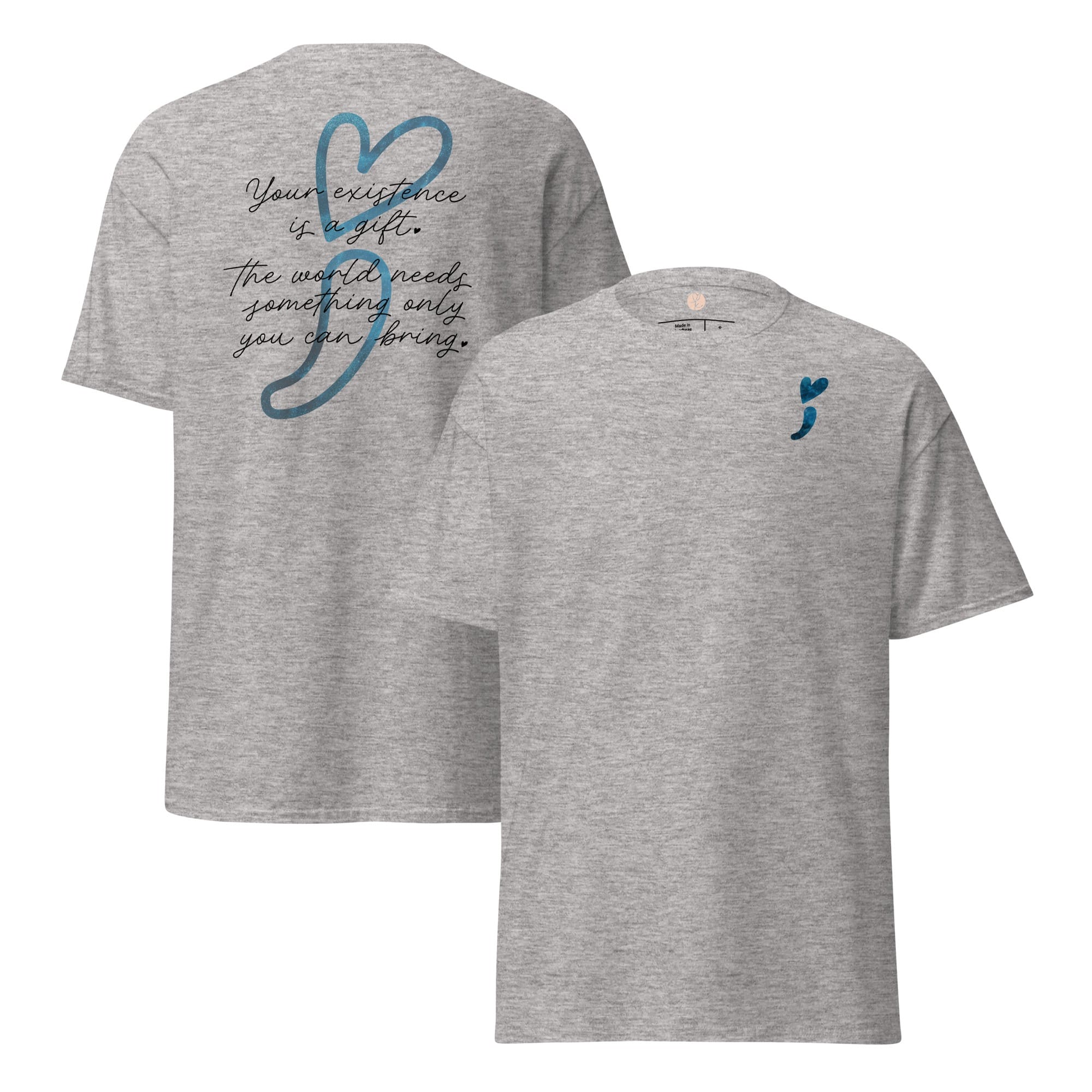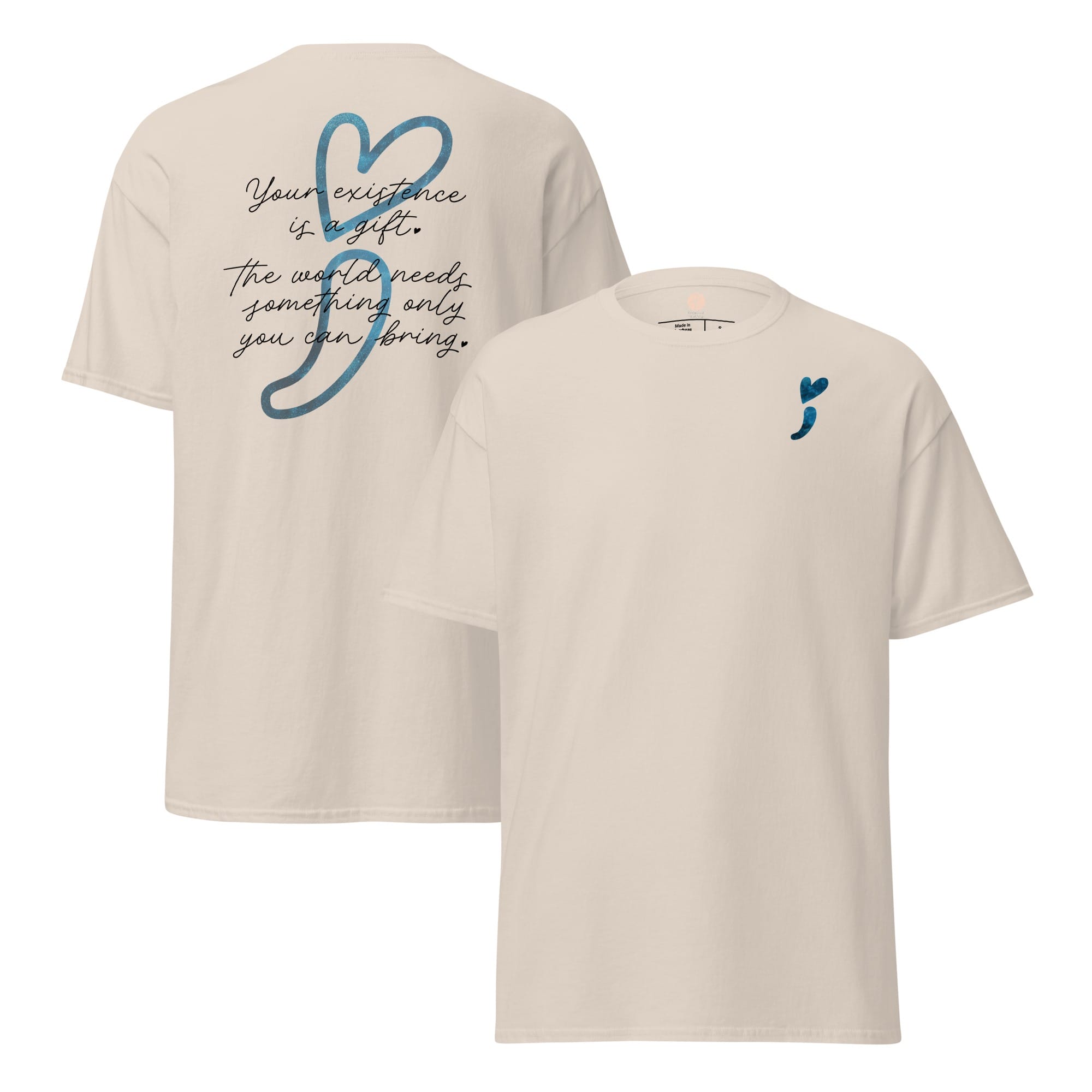 Wear your heart on your sleeveโliterally! This “Stay Positive” classic tee is your new wardrobe MVP, crafted to sprinkle good vibes all around. With a cheeky reminder that โYour existence is a gift,โ and a playful blue galaxy heart-shaped semicolon, it’s all about keeping hope afloat! Made from 100% cotton, this unisex tee is as soft as a cloud and sharp enough to cut through negativity. Whether you’re layering it up or rocking it solo, get ready to make waves and remind the world that youโre a positivity powerhouse!